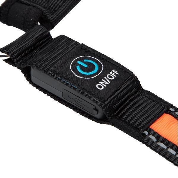 Wysokiej jakości smycz dla psa wyposażona w oświetlenie LED. Funkcja świetlna sprawia, że wieczorne spacery z psem stają się bezpieczniejsze dla nas oraz zwierzaka.