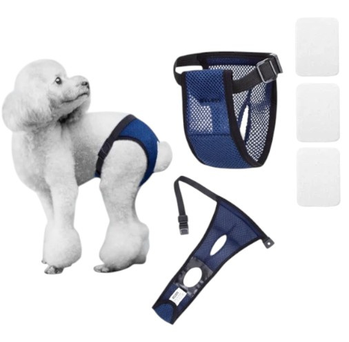 - Elastyczny regulowany pasek dopasowuje majtki do ciała psa;
