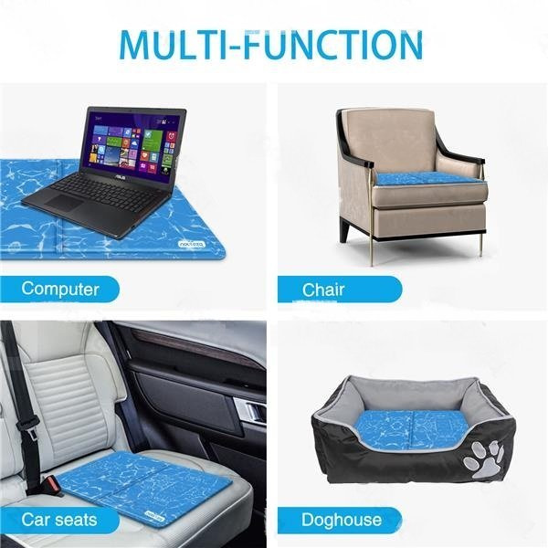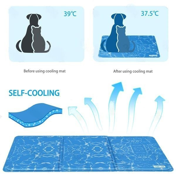 Mata chłodząca wspomaga regulację temperatury zwierzęcia podczas ciepłych dni. Wykonana została z poliestru, dzięki czemu jest łatwa w utrzymaniu czystości. Idealnie nadaje się zarówno dla psów jak i kotów. Matę możemy umiejscowić jako legowisko w budzie, w pomieszczeniu gdzie najczęściej przebywa nasz pupil, samochodzie, a nawet w plenerze. W przypadku wyjazdu na urlop, bądź za miasto matę bez problemu możemy zabrać ze sobą, wystarczy ją tylko złożyć w kostkę by zajmowała niewiele miejsca.