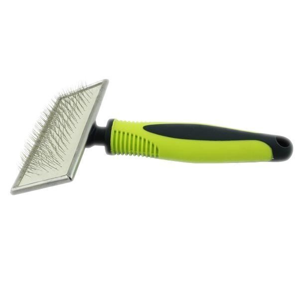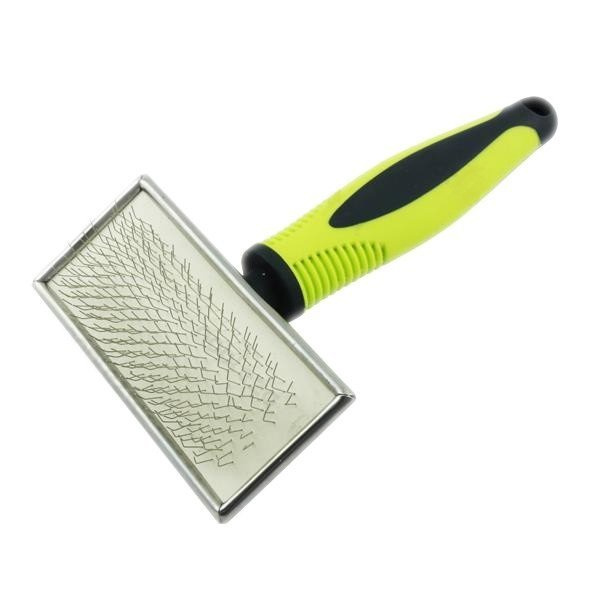 Regularne szczotkowanie pomaga utrzymać sierść w dobrej kondycji i uzyskać jej połysk. Szczotka jest idealna do masażu poprawiającego krążenie i pobudzającego porost włosa, a jej miękkie druciane kolce są delikatne dla skóry naszego pupila.