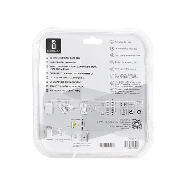 Nowoczesny, dzwonek do drzwi zasilany bakteryjnie. Dzięki zwiększonej odporności (IP44) oraz zasięgu do 150m może być umieszczony przed drzwiami lub furtką. Bezprzewodowy, wodoodporny dzwonek do drzwi zapewni bezproblemową obsługę wszelakich gości.