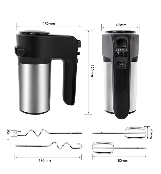 Mikser wykonany został ze stali nierdzewnej, posiada silnik 300W o wysokiej mocy do szybkiego mieszania.