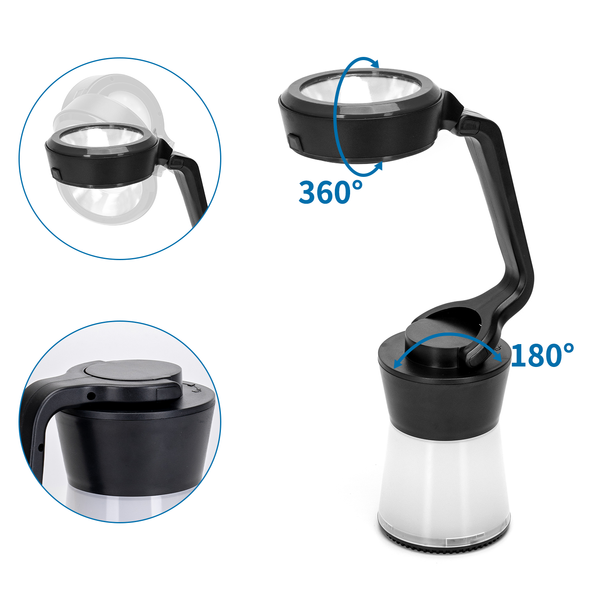 Latarka 3 w 1 ( lampka biurkowa, kempingowa lub przenośna latarka) ściemniana na 3 baterie AA (brak w zestawie). Wygodny uchwyt ułatwia przenoszenie. Idealna do użytku w domu i na zewnątrz, np. podczas wędkowania, spaceru, na biwaku, pikniku itp.