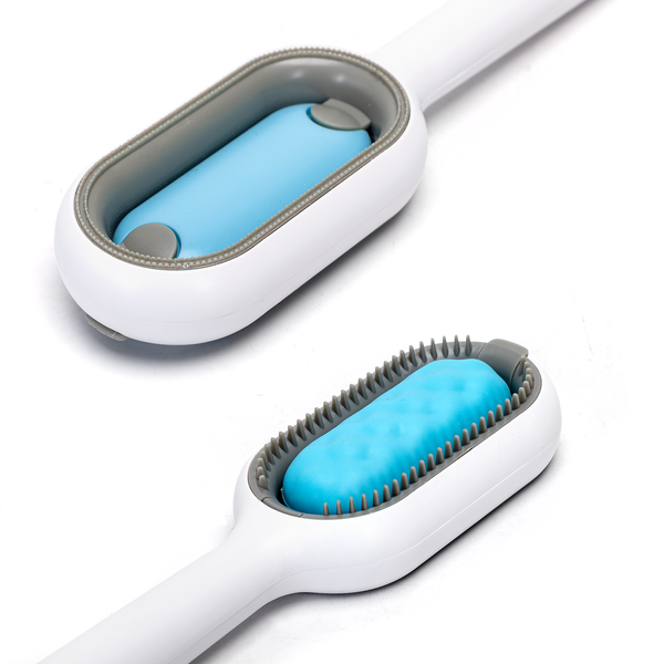 Niezwykle wygodna i praktyczna szczotka do wyczesywania sierści Twojego zwierzaka posiada dwustronną konstrukcję zębów grzebienia.
