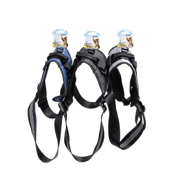 Posiada regulację w obwodzie na wysokości klatki piersiowej, dzięki czemu możemy idealnie dopasować je do naszego psa. Szelki są regulowane za pomocą plastikowych klamer ułatwiających zapinanie. Zawierają wszyte taśmy i szwy odblaskowe - dzięki czemu piesek będzie widoczny podczas wieczornych spacerów. Dysponują starannie zaprojektowanym uchwytem, umożliwiającym łatwiejsze przytrzymanie psa lub jego podniesienie. Wykonane są z wodoodpornego, mocnego oraz wytrzymałego na zadrapania poliestru.