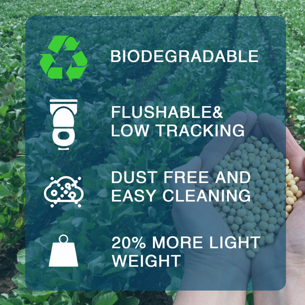 Produkt jest nieszkodliwy dla zwierząt. Jest bezpyłowy, całkowicie naturalny. Ulega biodegradacji więc może być spłukiwany w toalecie, szybko rozpuszcza się w wodzie. Przyjazny dla środowiska oraz wygodny. Nie powoduje brzydkich zapachów.