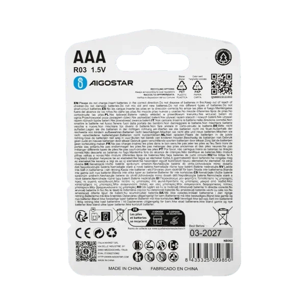 • Baterie R03 AAA 1,5V