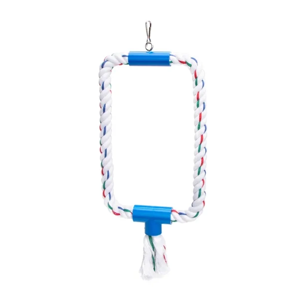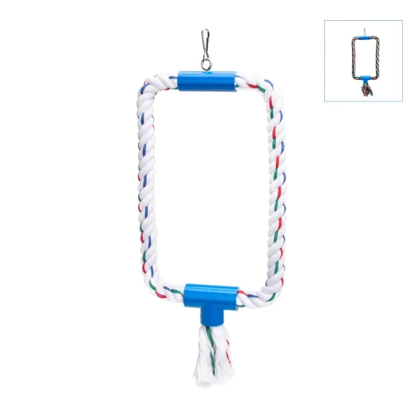 Posiada klips aby zawiesić ją w klatce, jest wygodna i mocno się trzyma. Kolorowa i przyjazna dla środowiska bawełniana lina o dobrej odporności na zużycie chroni pazury ptaka. Jest dostępna w dwóch kolorach i może się obracać o 360 stopni.