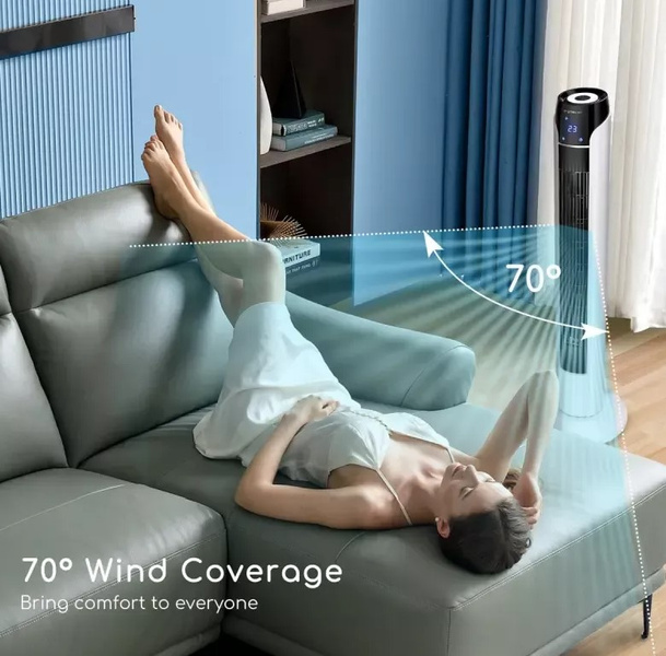 Wentylator kolumnowy 36-calowy obrót o 90° zdalne sterowany. Jest wyposażony w ekran LCD, który monitoruje temperaturę w pomieszczeniu w czasie rzeczywistym. Wyświetlacz LED z 3 prędkościami: niska-średnia-wysoka. Wysokiej jakości konstrukcja kanału wentylacyjnego sprawia, że wiatr staje się delikatniejszy i bardziej naturalny, zapewnia świeże i chłodne lato.