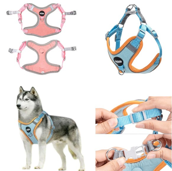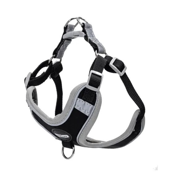 Posiada regulację w obwodzie na wysokości klatki piersiowej, dzięki czemu możemy idealnie dopasować je do naszego psa. Szelki są regulowane za pomocą plastikowych klamer ułatwiających zapinanie. Zawierają wszyte taśmy i szwy odblaskowe - dzięki czemu piesek będzie widoczny podczas wieczornych spacerów. Dysponują starannie zaprojektowanym uchwytem, umożliwiającym łatwiejsze przytrzymanie psa lub jego podniesienie. Wykonane są z wodoodpornego, mocnego oraz wytrzymałego na zadrapania poliestru.