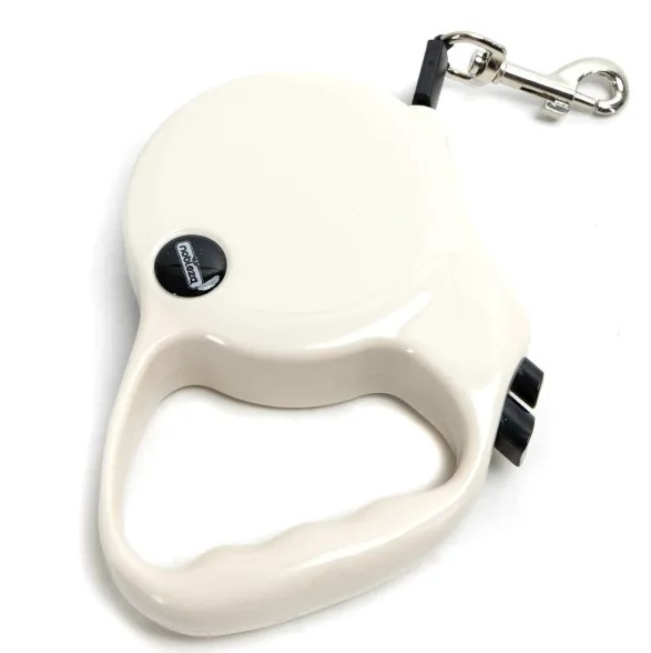 Klasyczna, zwijana i mocna smycz dla psa wykonana została z tworzywa sztucznego. Posiada komfortowy, ergonomiczny uchwyt. Wytrzymała linka o długości 5 metrów do 25kg zapewnia psu możliwość swobodnego biegania, a mechanizm hamowania i blokowania smyczy ułatwia kontrolę nad pupilem.